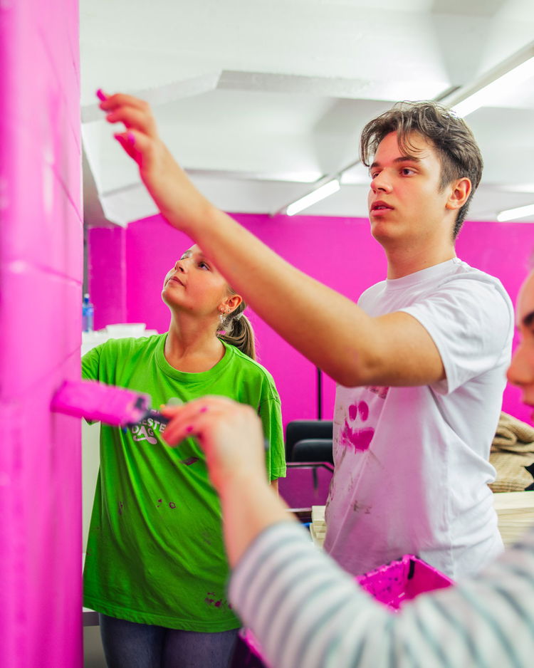 Da vi kommer på besøk en varm junikveld, er sju ungdommer i full sving med å male det nye lokalet i sterke farger.